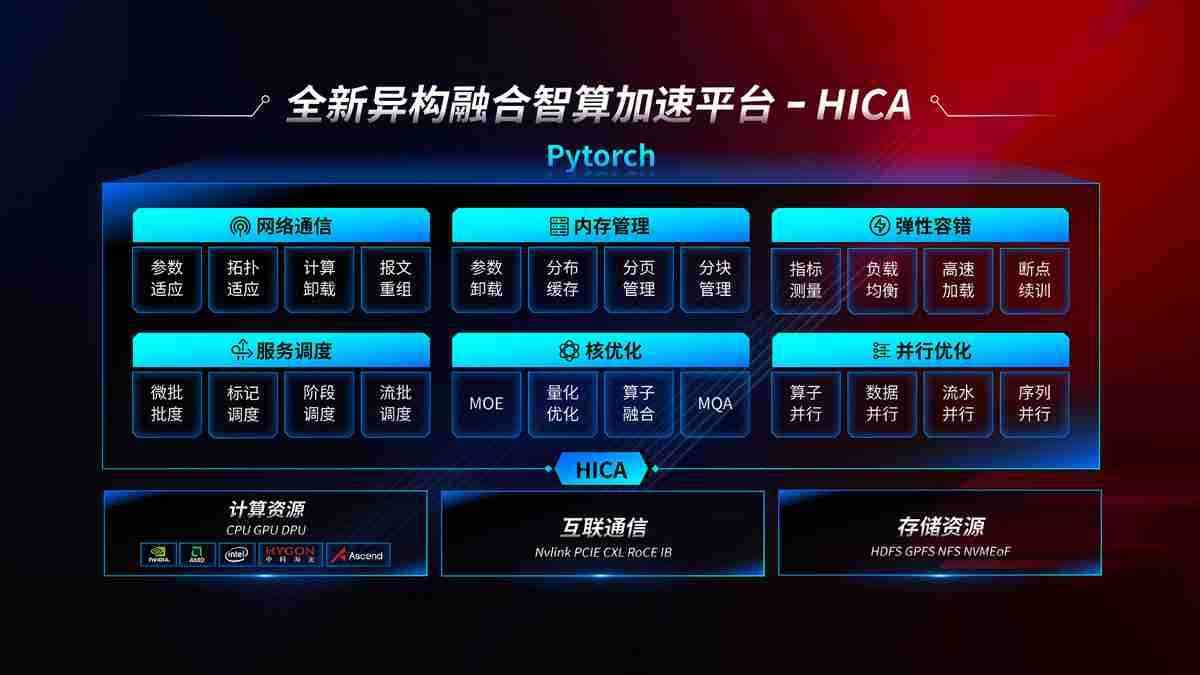 通过自研的服务层、、、中间适配层、、、以及调度编排算法,,采用数据并行、、模型并行等多种并行方式,,,把并行计算任务进行有效的分解,,,,使其分别由相应的软件栈和算力资源来承接。。。。当GPU资源变化,,,,HICA可以实时动态调度计算子任务并调整模型拓扑和架构,,,,以充分聚合各种算力资源。。。。