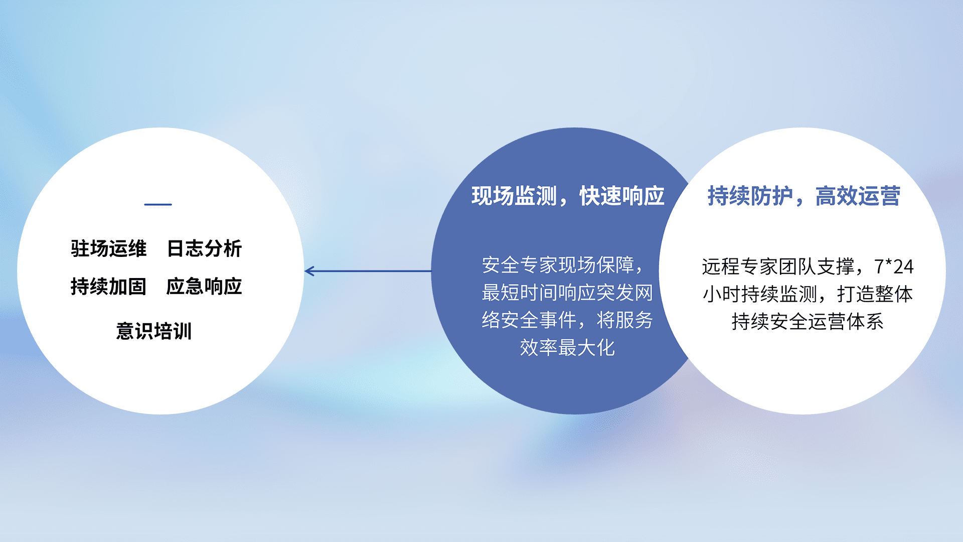 针对客户行业特性,,提供专属的一站式安全管理服务,,,帮助客户全面感知网络空间威胁,,,通过安全专家的线上、、线下防护支持,,实现风险闭环,,将安全保障常态化,,,,为客户打造常态化安全运维运营服务。。